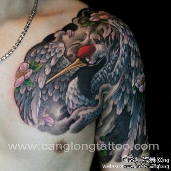 时尚很帅的半甲仙鹤丹顶鹤纹身图片图片作品_半甲纹身图案大全_纹身图吧