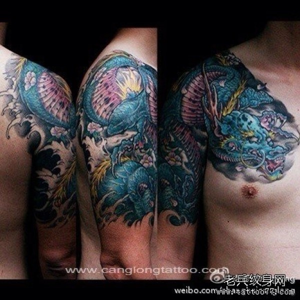 男生喜欢的超帅的半甲披肩龙纹身图片图片作品_半甲纹身图案大全_纹身图吧