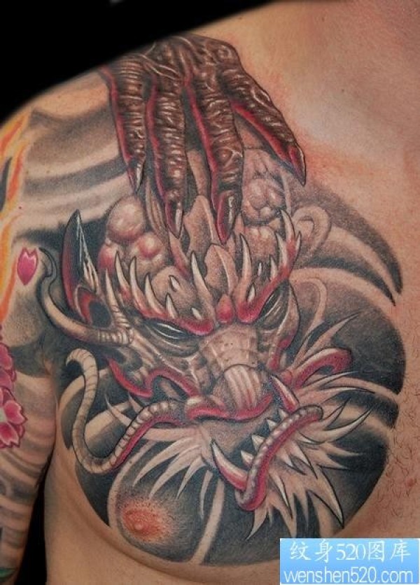 纹身520图库半甲龙头文身图片作品_半甲纹身图案大全_纹身图吧