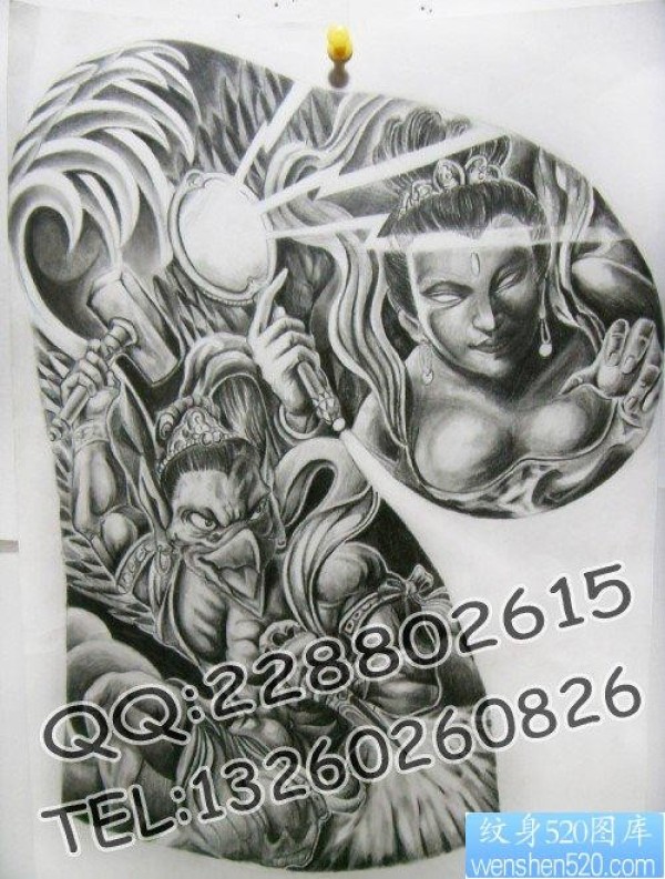 传统半甲纹身图片半甲雷公电母纹身图案_半甲纹身图案大全_纹身图吧