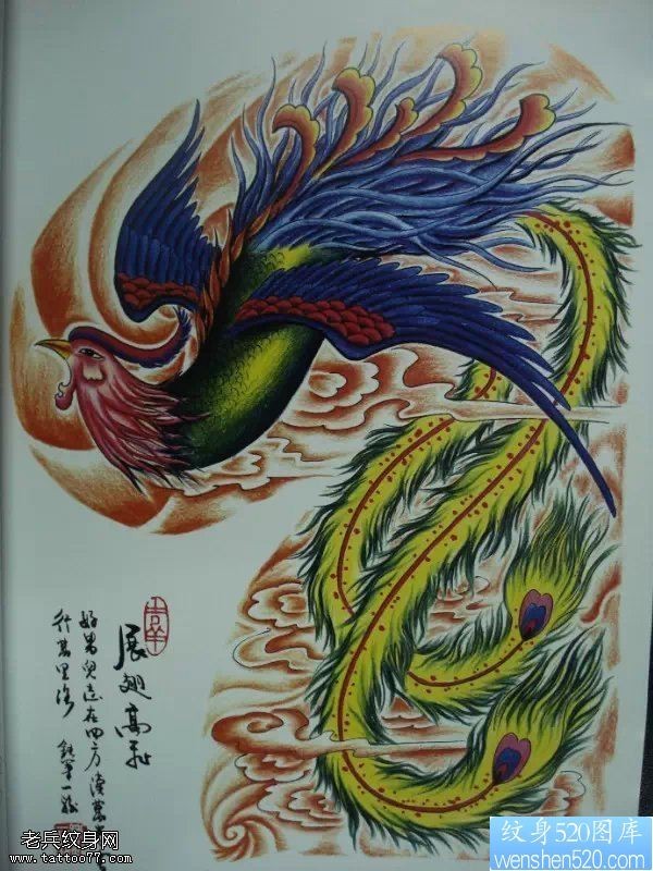 一款半甲彩色凤凰纹身图案_半甲纹身图案大全_纹身图吧