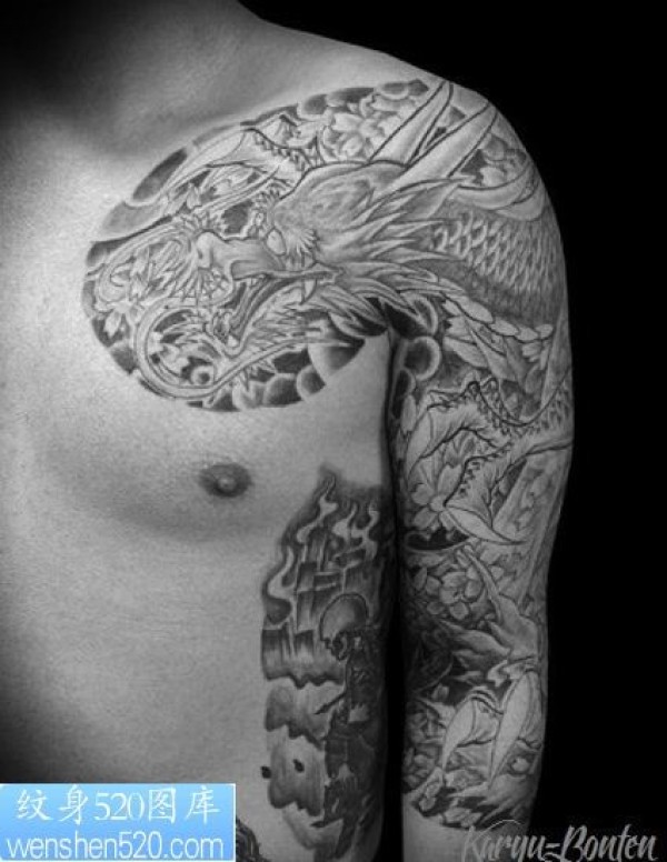 男生喜欢的超帅的半甲披肩龙纹身图片图片作品_半甲纹身图案大全_纹身图吧
