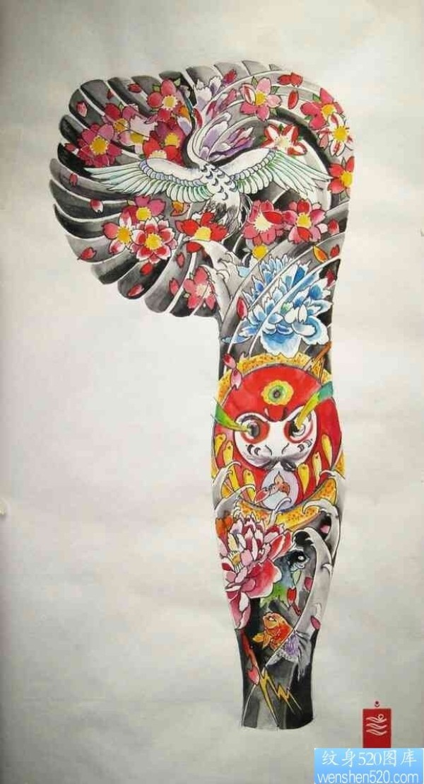 一款不错的半甲纹身手稿图案_半甲纹身图案大全_纹身图吧