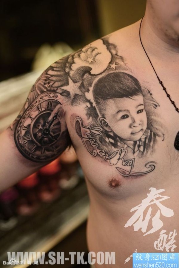 胳膊儿子女儿房子翅膀半甲纹身图片_半甲纹身图案大全_纹身图吧