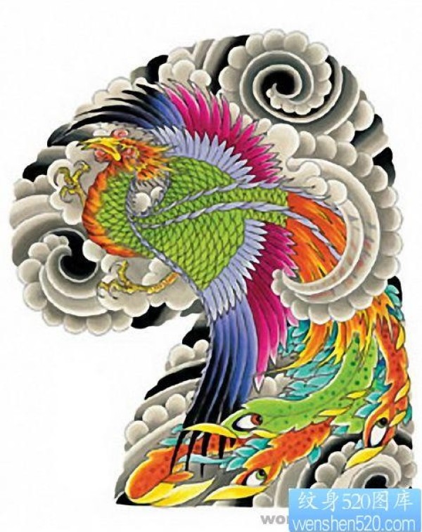 半甲凤凰纹身图片作品_半甲纹身图案大全_纹身图吧