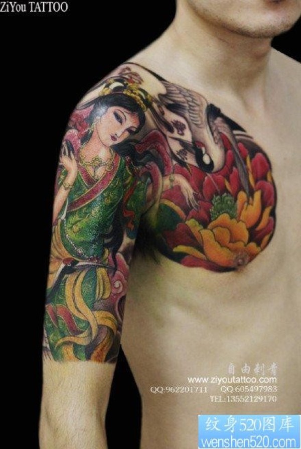 时尚漂亮的半甲侍女纹身图片图片作品_半甲纹身图案大全_纹身图吧
