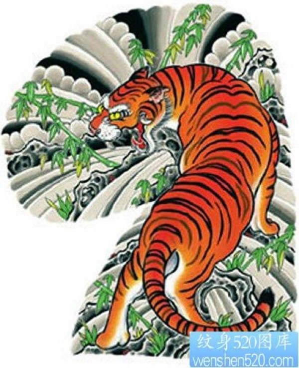 日式老传统经典的传统半甲上山虎纹身手稿图片_半甲纹身图案大全_纹身图吧