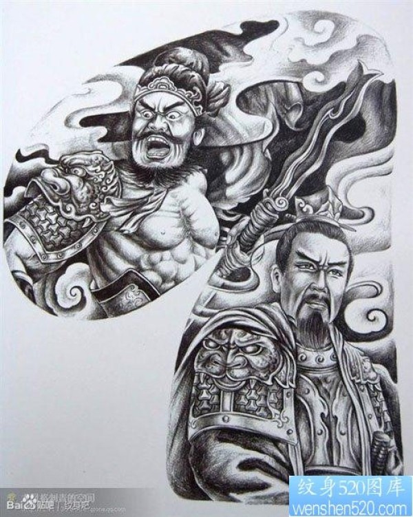 一张经典超酷的半甲张飞刘备纹身图片_半甲纹身图案大全_纹身图吧