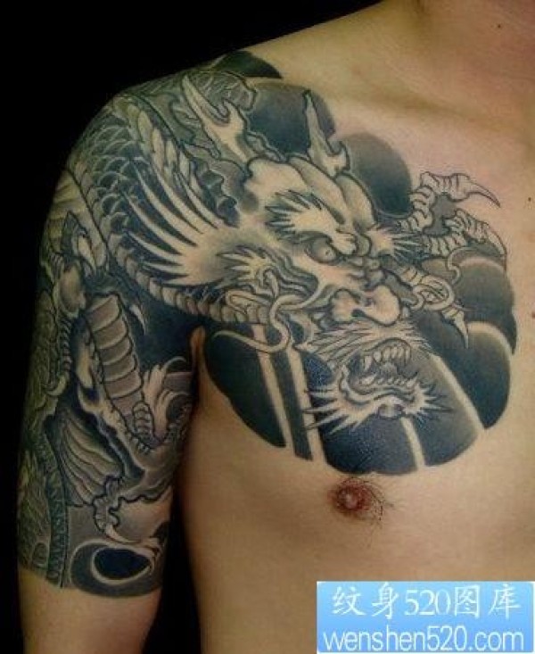 一张经典半甲披肩龙纹身图片纹身图案_半甲纹身图案大全_纹身图吧