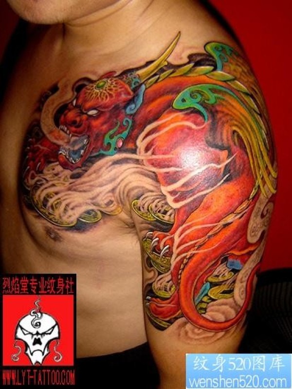酷哥披肩半甲貔貅纹身图_半甲纹身图案大全_纹身图吧