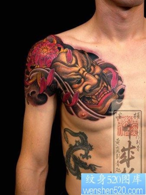 一张日本彩色半甲嘎巴拉纹身图案_半甲纹身图案大全_纹身图吧