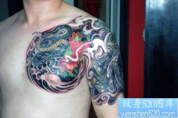 男生喜欢的超帅的半甲披肩龙纹身图片图片作品_半甲纹身图案大全_纹身图吧