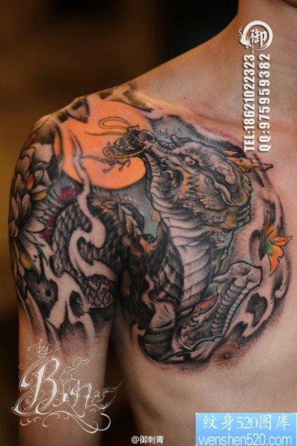 男生喜欢的超帅的半甲披肩龙纹身图片图片作品_半甲纹身图案大全_纹身图吧