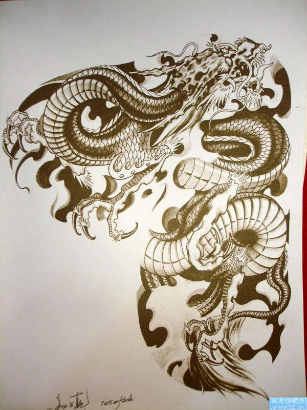 一张半甲龙纹身手稿由_半甲纹身图案大全_纹身图吧
