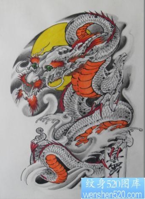 彩色半甲龙披肩龙纹身图片纹身图案_半甲纹身图案大全_纹身图吧