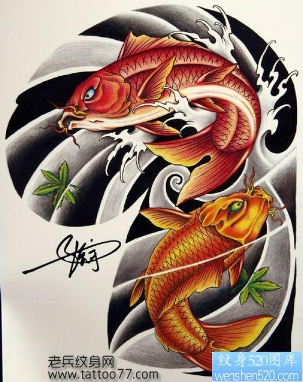 彩色半甲鲤鱼纹身手稿―为你提供_半甲纹身图案大全_纹身图吧