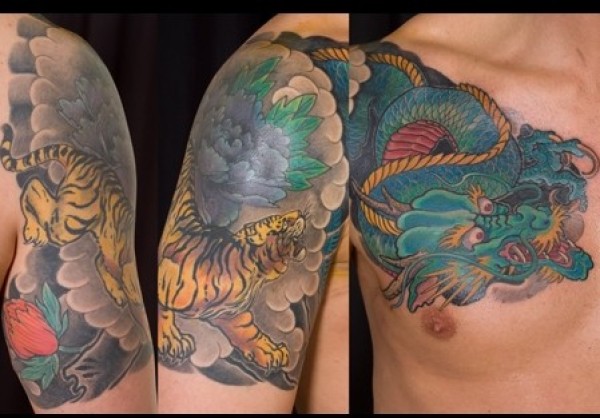 半甲龙老虎纹身图案图片_半甲纹身图案大全_纹身图吧