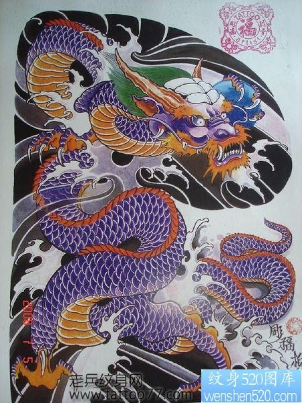 半甲披肩龙纹身手稿_半甲纹身图案大全_纹身图吧