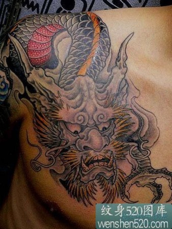 霸气胸前大龙头半甲刺青_半甲纹身图案大全_纹身图吧