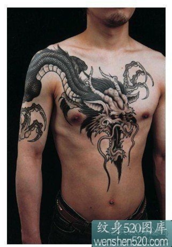 男生喜欢的超帅的半甲披肩龙纹身图片图片作品_半甲纹身图案大全_纹身图吧