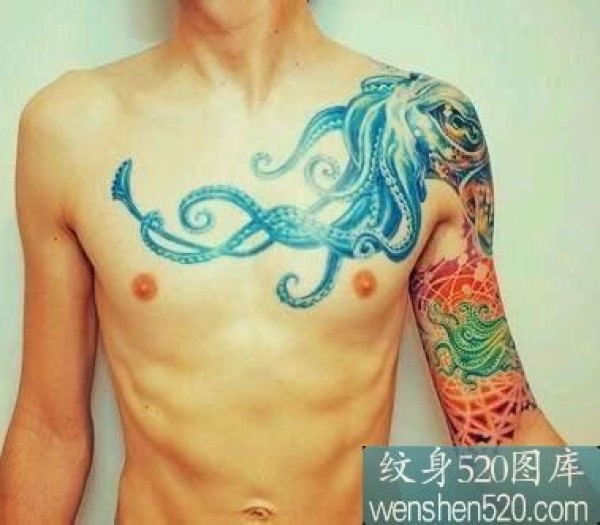 类半甲章鱼纹身作品_半甲纹身图案大全_纹身图吧