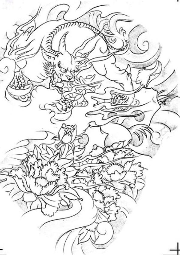 来自中国经典的传统半甲喜庆鲤鱼牡丹纹身手稿_半甲纹身图案大全_纹身图吧