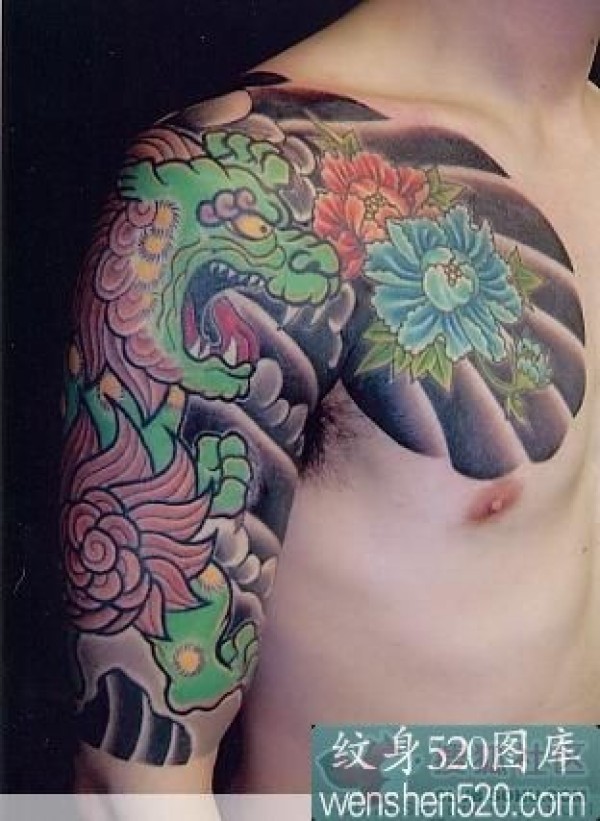 半甲狮子头纹身图案_半甲纹身图案大全_纹身图吧