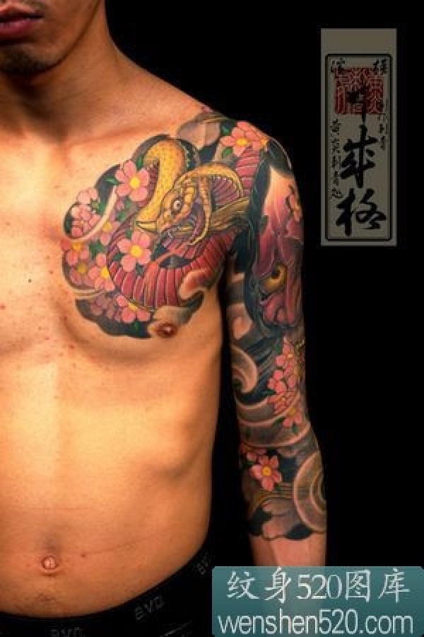 半甲金蛇纹身作品_半甲纹身图案大全_纹身图吧