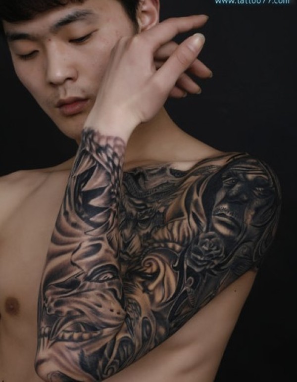 帅小哥的半甲纹身_半甲纹身图案大全_纹身图吧