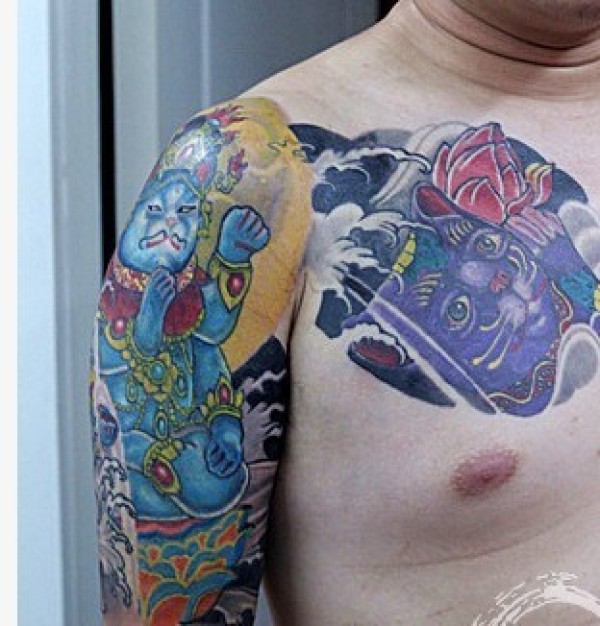 一幅潮流很酷的半甲佛头与象神纹身图片图片推_半甲纹身图案大全_纹身图吧