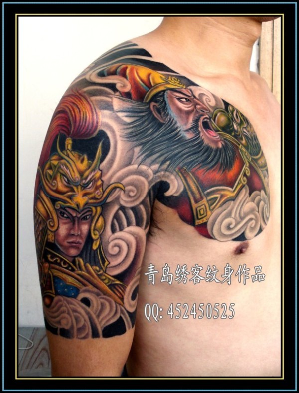 来自烈火的一幅超酷的半甲牛魔王与孙悟空纹身_半甲纹身图案大全_纹身图吧