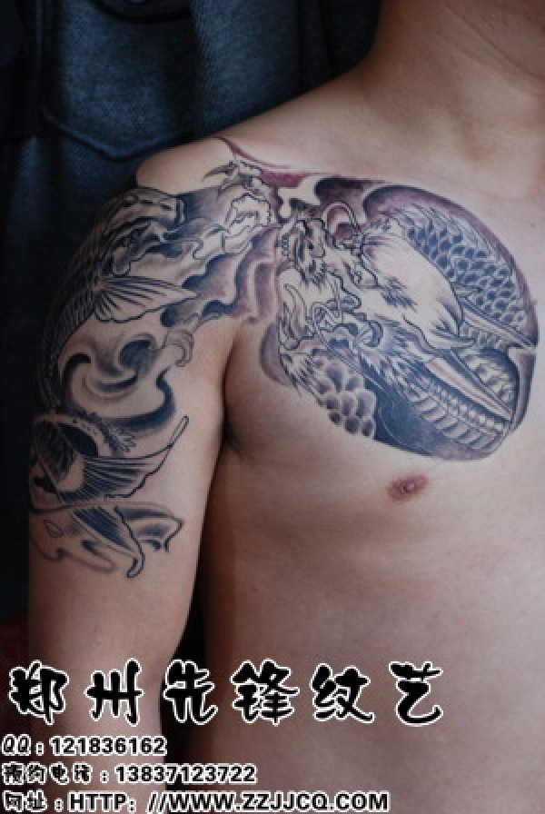 男生喜欢的超帅的半甲披肩龙纹身图片图片作品_半甲纹身图案大全_纹身图吧