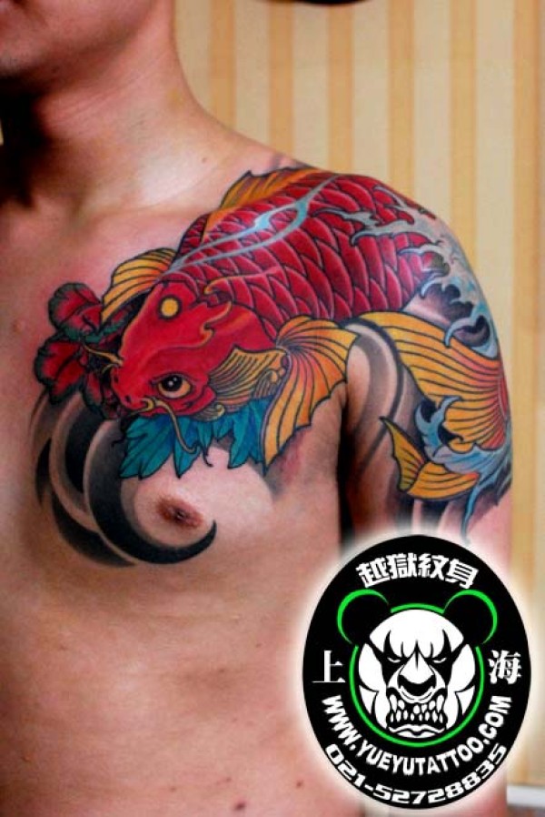 纹身bbs推荐的土豪金半甲鲤鱼纹身图片图片欣赏_半甲纹身图案大全_纹身图吧