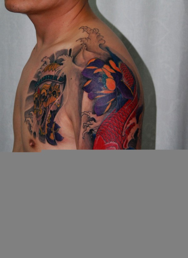 纹身bbs推荐的土豪金半甲鲤鱼纹身图片图片欣赏_半甲纹身图案大全_纹身图吧