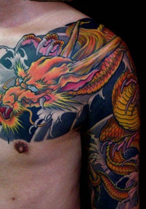 男生喜欢的超帅的半甲披肩龙纹身图片图片作品_半甲纹身图案大全_纹身图吧