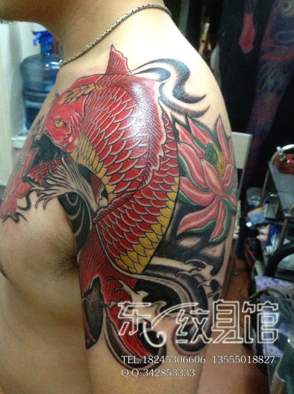 彩色半甲鲤鱼纹身_半甲纹身图案大全_纹身图吧