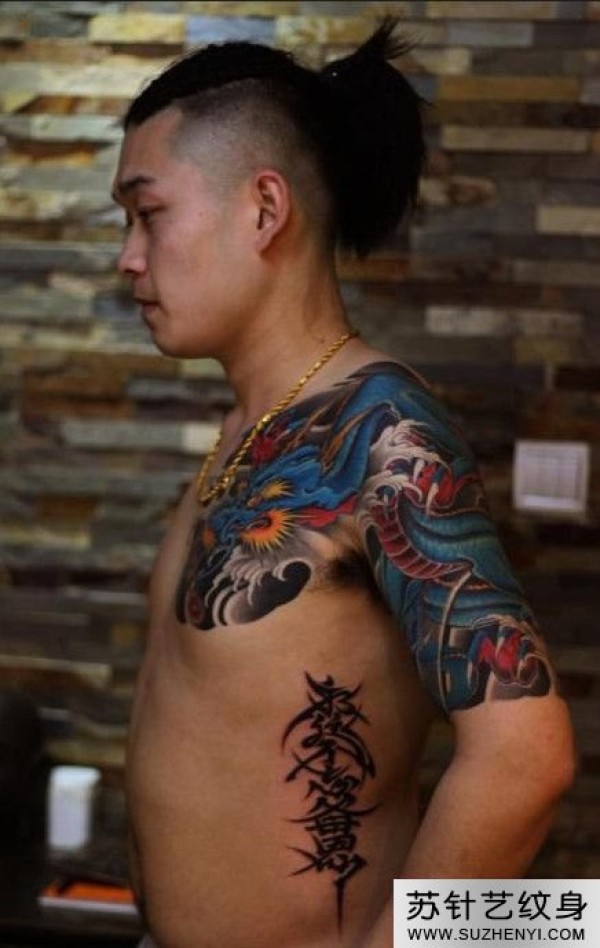 男生喜欢的超帅的半甲披肩龙纹身图片图片作品_半甲纹身图案大全_纹身图吧