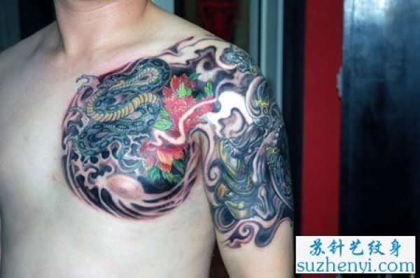 男生喜欢的超帅的半甲披肩龙纹身图片图片作品_半甲纹身图案大全_纹身图吧