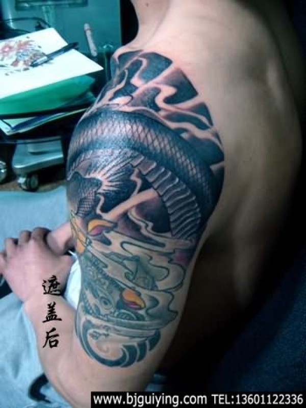 男生喜欢的超帅的半甲披肩龙纹身图片图片作品_半甲纹身图案大全_纹身图吧