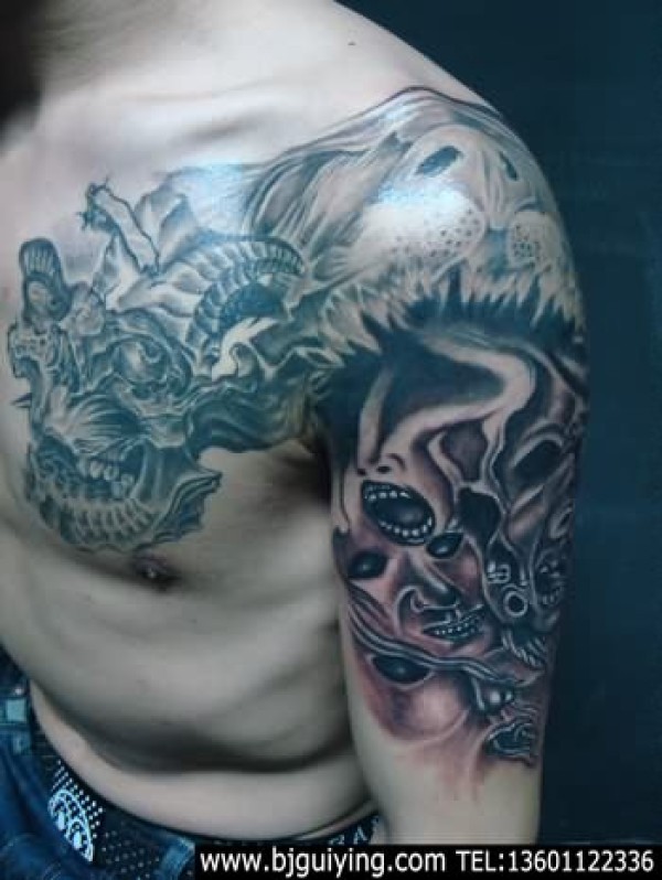 来自烈火的一幅超酷的半甲牛魔王与孙悟空纹身_半甲纹身图案大全_纹身图吧
