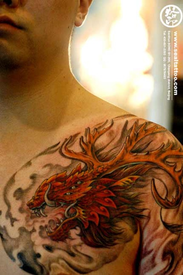 男生喜欢的超帅的半甲披肩龙纹身图片图片作品_半甲纹身图案大全_纹身图吧