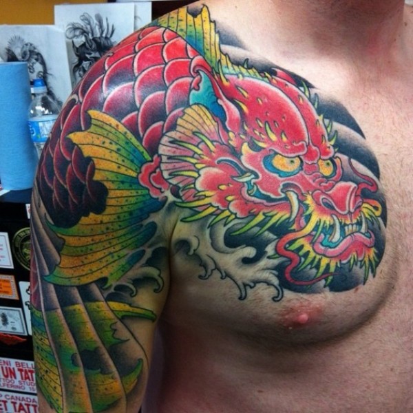 男生喜欢的超帅的半甲披肩龙纹身图片图片作品_半甲纹身图案大全_纹身图吧