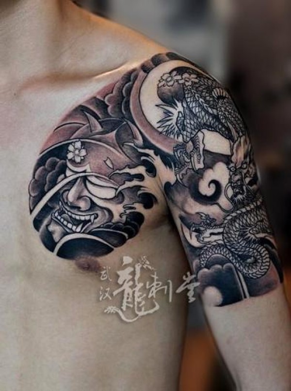 男生喜欢的超帅的半甲披肩龙纹身图片图片作品_半甲纹身图案大全_纹身图吧