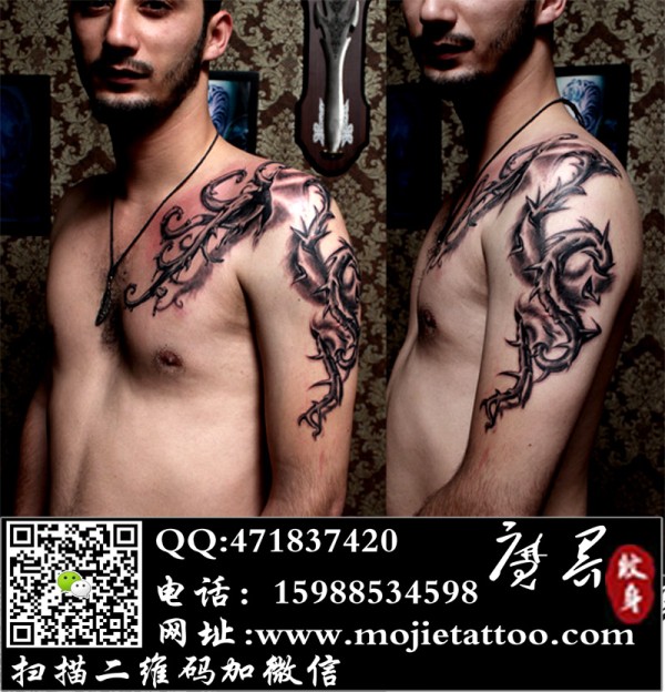 男生喜欢的超帅的半甲披肩龙纹身图片图片作品_半甲纹身图案大全_纹身图吧