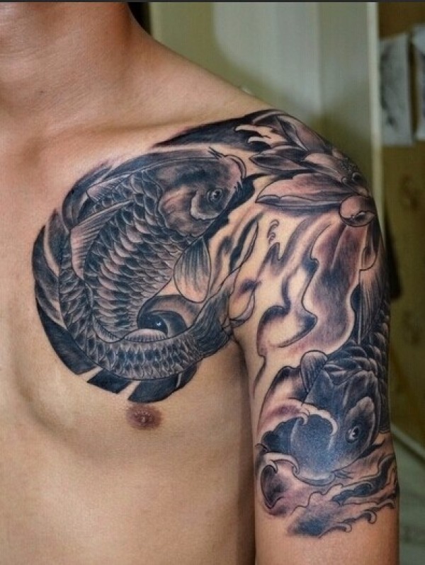 纹身bbs推荐的土豪金半甲鲤鱼纹身图片图片欣赏_半甲纹身图案大全_纹身图吧