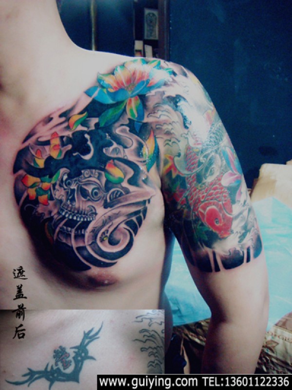 男生喜欢的超帅的半甲披肩龙纹身图片图片作品_半甲纹身图案大全_纹身图吧