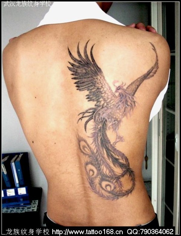 背部功夫熊猫孔雀王刺青_后背纹身图案大全_纹身图吧