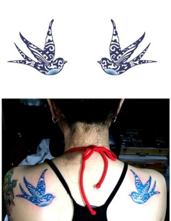 女人后背小鸟纹身_后背纹身图案大全_纹身图吧
