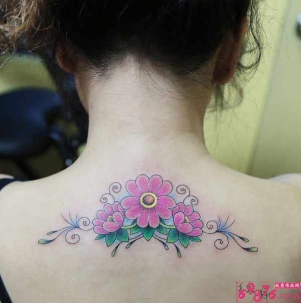 美女背部梅花纹身_后背纹身图案大全_纹身图吧