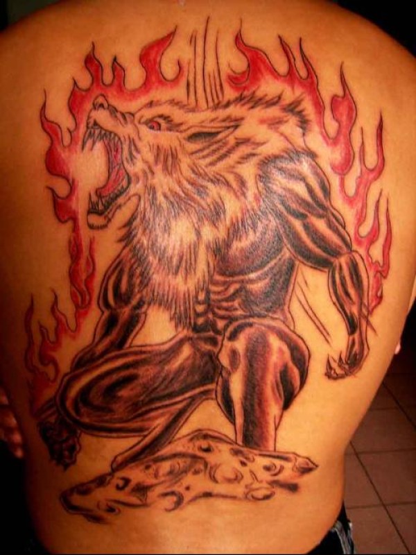 满背火焰狼人纹身作品_后背纹身图案大全_纹身图吧